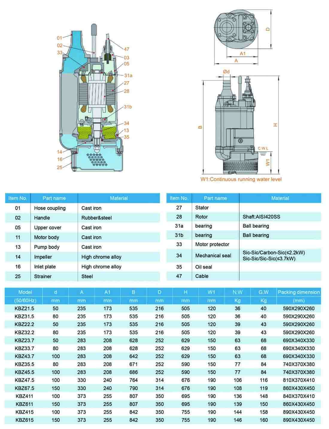 KBZ series submersible slurry pump with Introduction: